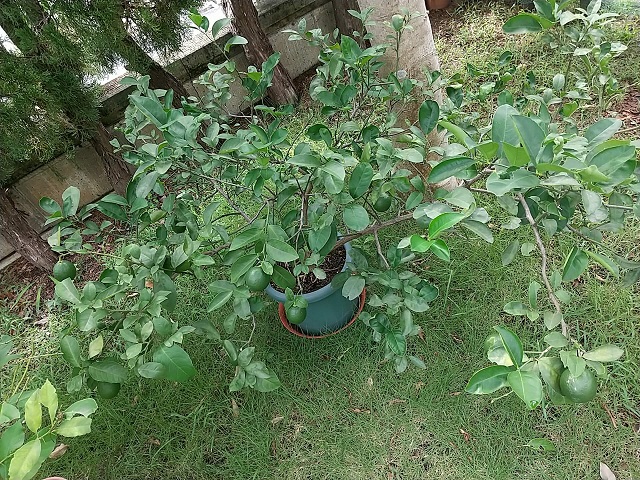 園芸のテレビ番組で日当たりそんなに要らないって柑橘農家さんが言っていたので、今年は木の下に置いてみたらいい感じみたいです。木の陰になって水分の蒸発も抑えられカラッカラに乾くことはありませんでした。